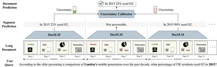 Large Vision–Language Models (LVLMs) have demonstrated strong multimodal reasoning capabilities on long and complex documents. However, their high memory footprint makes them impractical for deployment on resource-constrained edge devices. We present DocSLM, an efficient Small Vision–Language Model designed for long document understanding under constrained memory resources. DocSLM~ incorporates a Hierarchical Multimodal Compressor that jointly encodes visual, textual, and layout information from each page into a fixed-length sequence, greatly reducing memory consumption while preserving both local and global semantics. To enable scalable processing over arbitrarily long inputs, we further introduce a Streaming Abstention mechanism that operates on document segments sequentially and filters low-confidence responses through an entropy-based uncertainty calibrator. Across multiple long multimodal document benchmarks, DocSLM~matches or surpasses state-of-the-art methods while using 82% fewer visual tokens, 75% fewer parameters, and 71% lower latency—delivering reliable multimodal document understanding on lightweight edge devices. Code and Model are available in https URL.